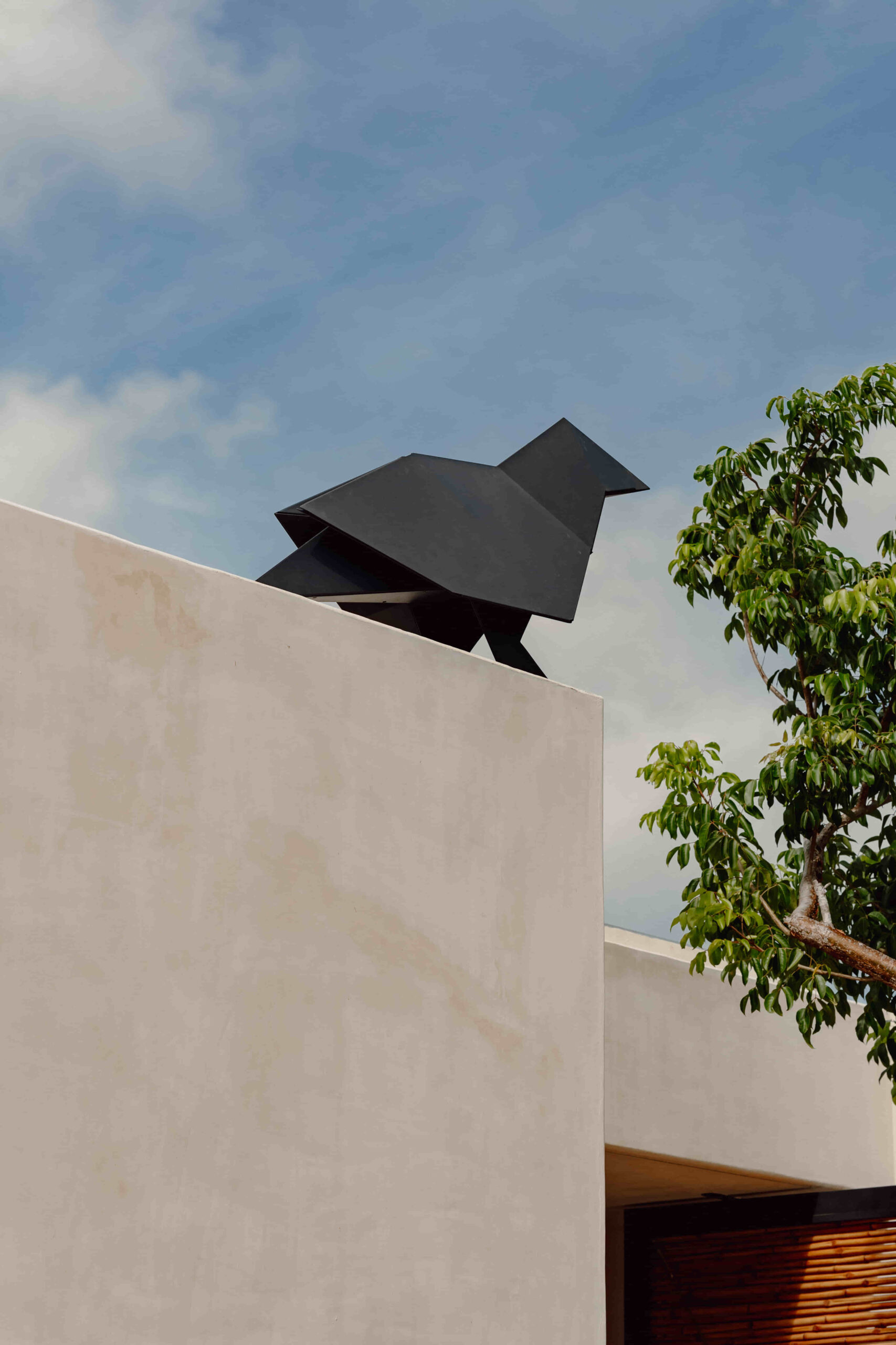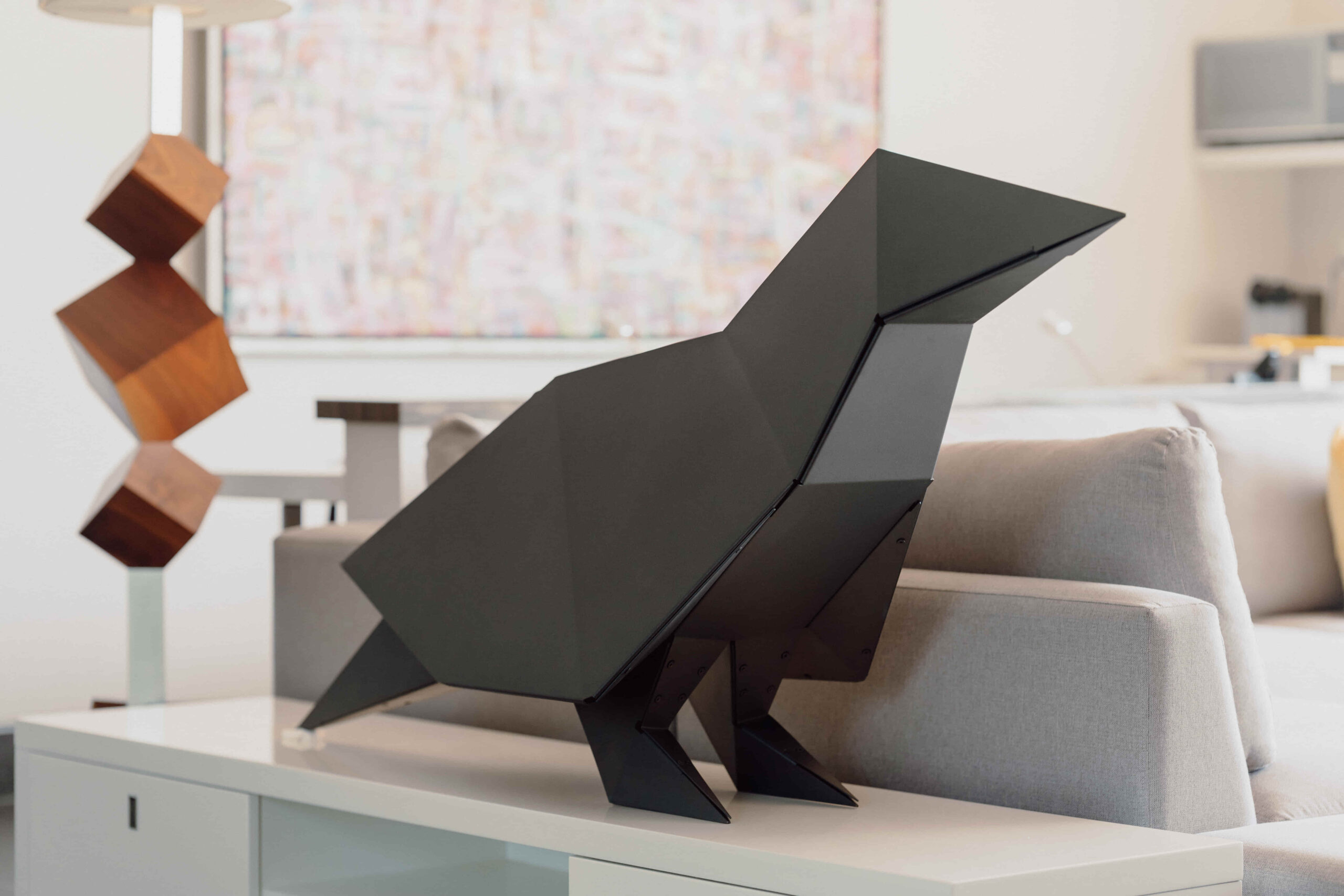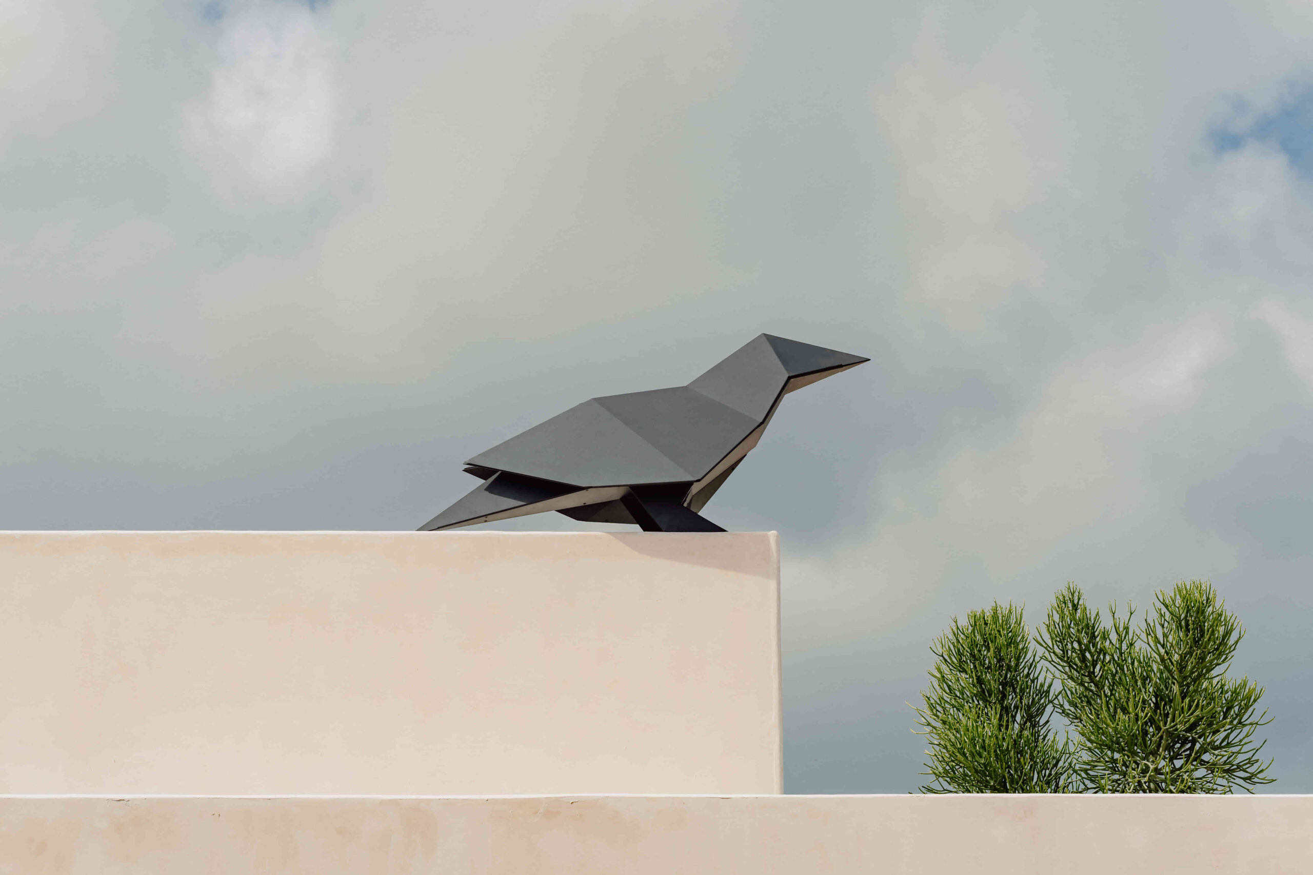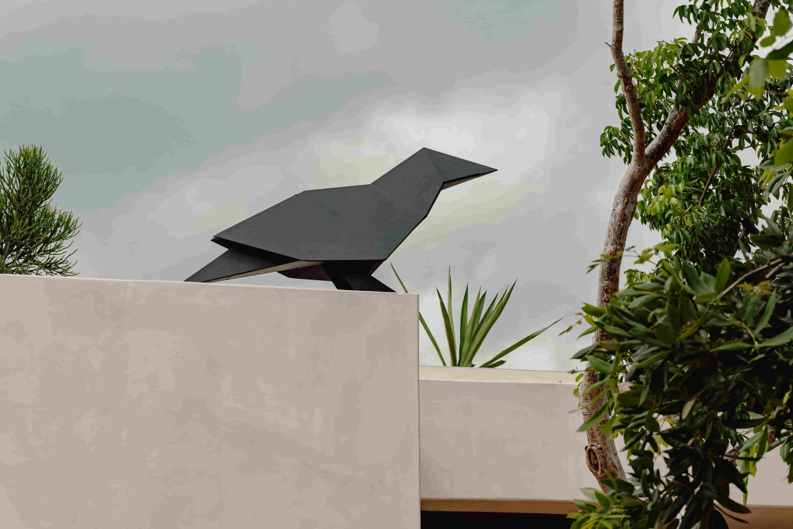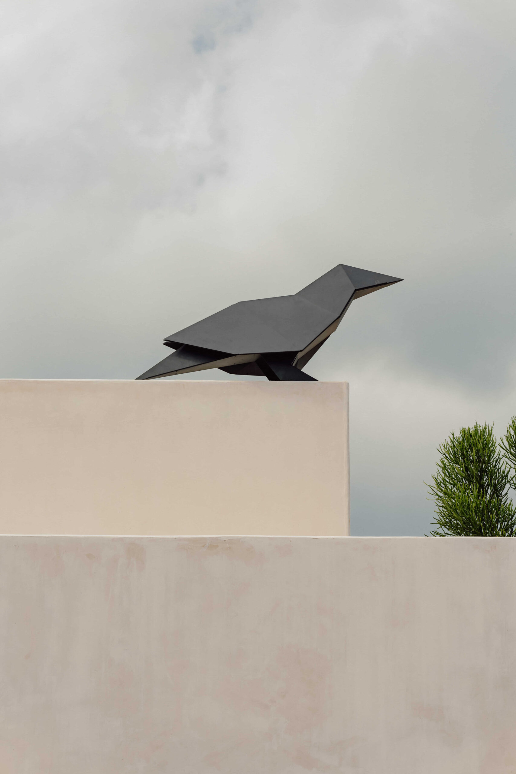 Los cuervos tienen una fama ambigua: han sido considerados como símbolos de la traición o de la sabiduría divina. El cuervo de Bestiario está posado sobre el piso y mira ligeramente hacia arriba, aún no sabemos si está esperando una señal o está preparándose para emprender el vuelo.